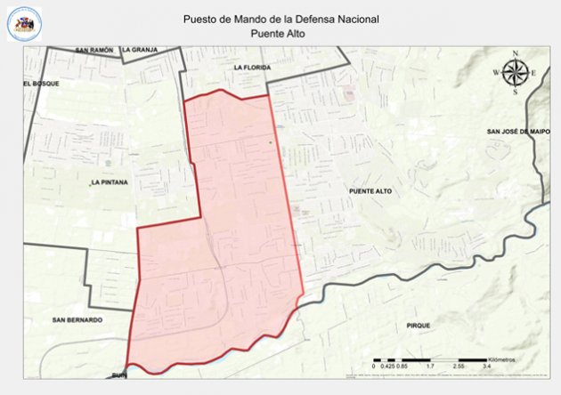 | En Puente Alto, la cuarentena se mantiene entre las avenidas Elisa Correa desde el norte, hasta el límite con el Río Maipo al sur, y los ejes de Av. Vicuña Mackenna - Av. Concha y Toro hacia el poniente, con límites en Acceso Sur y Av. Santa Rosa.