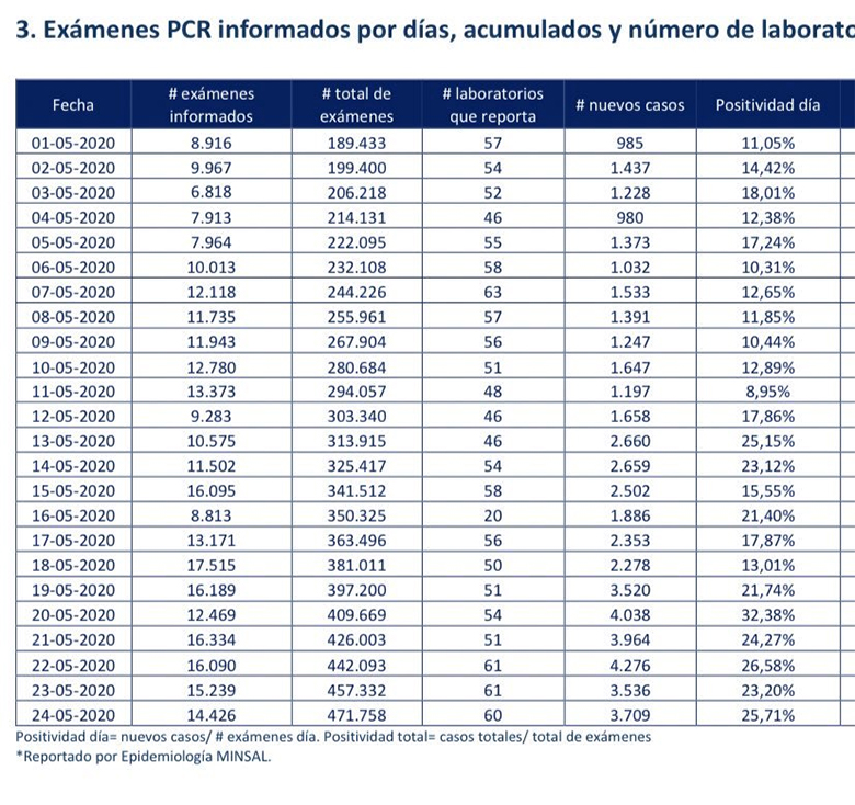 Al mismo tiempo, sobre la capacidad de exámenes, el ministro Mañalich aseveró que "estamos testeando más de lo que se necesita". Sin embargo, según la autoridad sanitaria, esto trae un "efecto adverso terrible" debido a que "el número de falsos positivos aumenta".