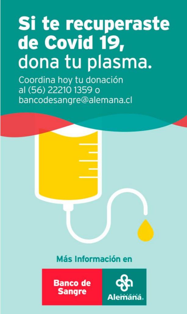 La Clínica Alemana llamó a las personas recuperadas de Covid-19 a donar su sangre para ayudar a pacientes críticos mediante una transfusión de plasma, técnica que están probando por el éxito conseguido con ella al tratar otras enfermedades.