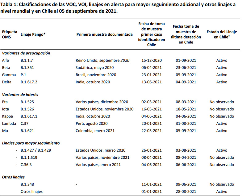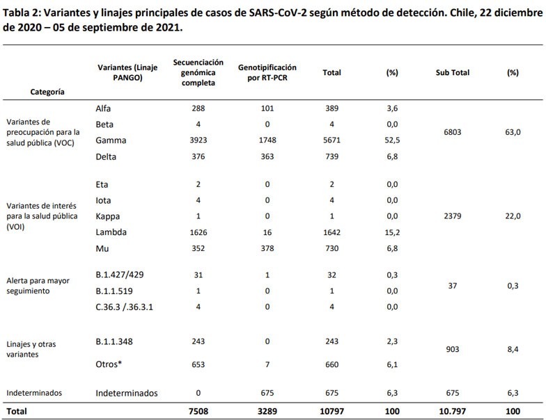 Hasta el 5 de septiembre se habían confirmado 310 infecciones con esa mutación en viajeros llegados al país o relacionados con ellos, mientras que 429 ya son consideradas como casos comunitarios. Sobre estos últimos, se han identificado contagiados con residencia en todo el país exceptuando las regiones de Atacama y de Aysén.