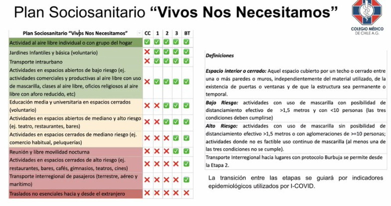 El ministro de Salud, Enrique Paris, confirmó que "hemos recibido una propuesta del Colegio Médico en el contexto del manejo de la pandemia, como ocurre habitualmente, nosotros recibimos propuestas y la estudiaremos en su propio mérito para obviamente adaptar a nuestro Plan Paso a Paso. Nosotros siempre hemos dicho que estamos dispuestos a revisar las estrategias".