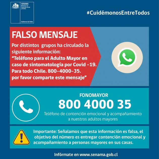 | [Foto] El Servicio Nacional del Adulto Mayor (Senama) lamentó la información falsa que circula sobre su teléfono 800 4000 35, que no responde consultas sobre el Covid-19
