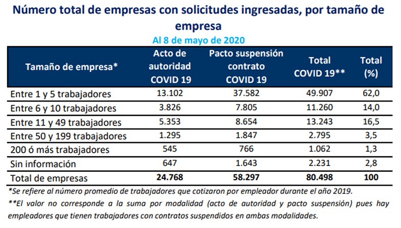 El subsecretario del Trabajo, Fernando Arab, indicó que "se ha mantenido la tendencia en relación al uso de la Ley de Protección del Empleo. Hoy ya son prácticamente 80 mil las empresas que se están acogiendo a esta ley, en similar proporción a como veníamos conociendo en las semanas anteriores, es decir, la gran mayoría de las empresas acogidas, un 96 por ciento son micros, pequeñas y medianas empresas y solo un universo menor, el 1,3 por ciento, son grandes empresas".