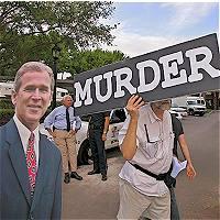 Afuera del hospital para enfermos terminales en el cual falleció, hubo personas que protestaban por la ineficacia del gobierno de EE.UU. para mantener a Schiavo con vida. |