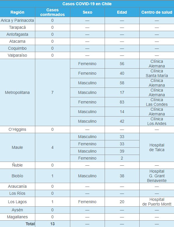 Estas personas residen en las regiones Metropolitana, del Maule y Biobío, respectivamente. Entre los confirmados llama la atención una bebé de dos años, la paciente más joven del país, quien está internada en el Hospital de Talca.