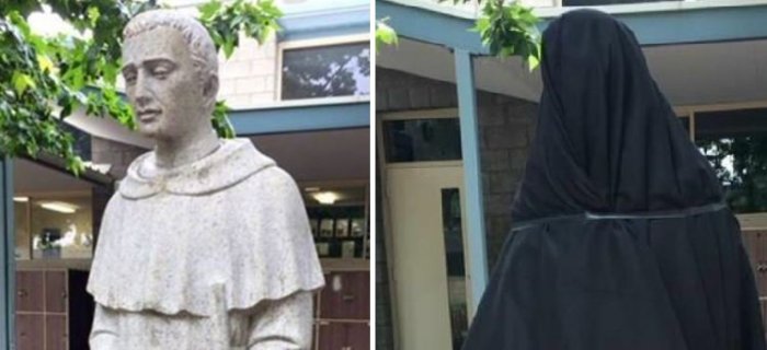 Colegio católico censuró estatua de un santo con un niño por “sugerente” motivo