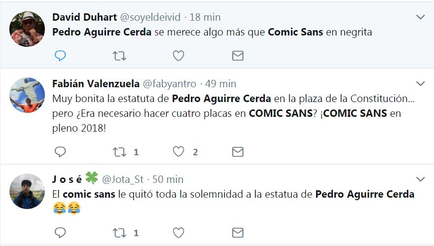 Este martes una estatua de Pedro Aguirre Cerda se inauguró en la Plaza de la Constitución, pero un detalle bajo la efigie del ex Presidente no pasó inadvertido: La fuente elegida para los lemas que lleva es la odiada "Comic Sans", lo que desató la furia de usuarios de redes sociales.