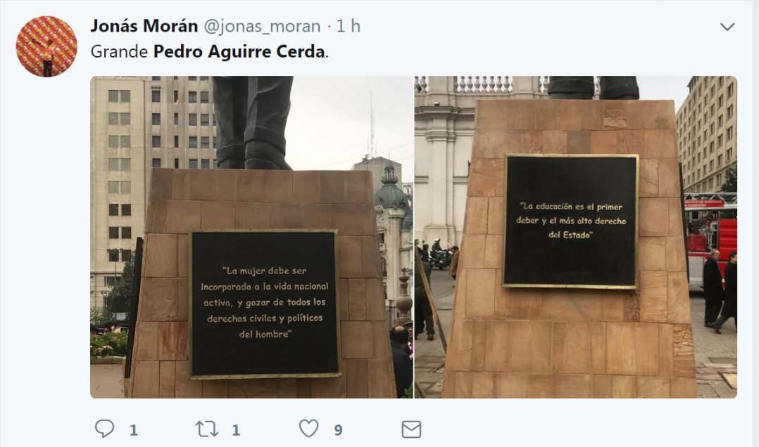 Critican nueva estatua de Pedro Aguirre Cerda por usar fuente Comic Sans