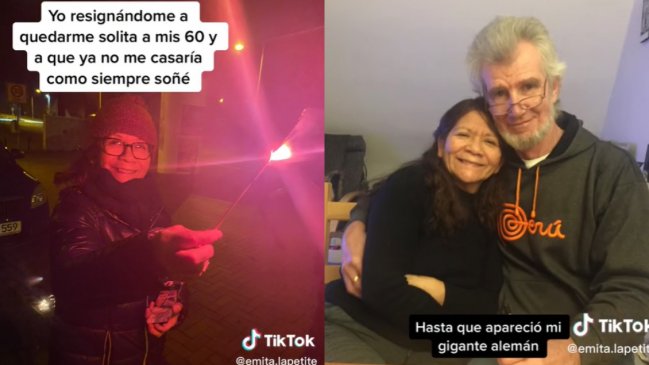 "Yo resignándome a quedarme solita a mis 60 y a que ya no me casaría como siempre soñé, hasta que apareció mi gigante alemán. Los tiempos de Dios son maravillosos", aseguró la mujer en un video de TikTok donde mostraba fotos junto a su marido.