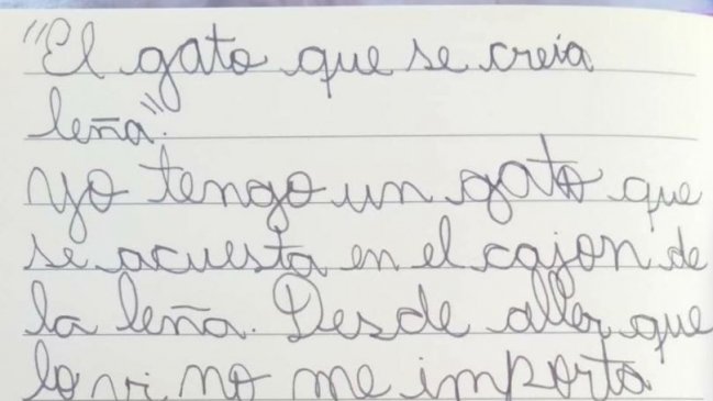 Este es el cuento viralizado: "Yo tengo un gato que se acuesta en el cajón de la leña. Desde ayer que lo vi no me importa que se acueste ahí, a menos que mi papá se confunda y lo meta a la estufa, gracias al cielo no ha pasado".