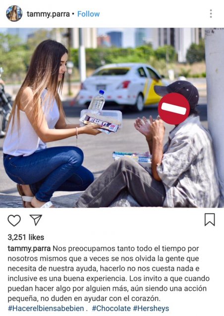 La compañía de chocolates Hershey's lanzó en México la campaña "Hacer el bien sabe bien", donde influencers entregaban productos a personas en situación de calle. La gran crítica fue que los famosillos debían lucir la marca en las fotos que subían, lo que provocó muchas críticas en redes y las disculpas posteriores de la empresa.