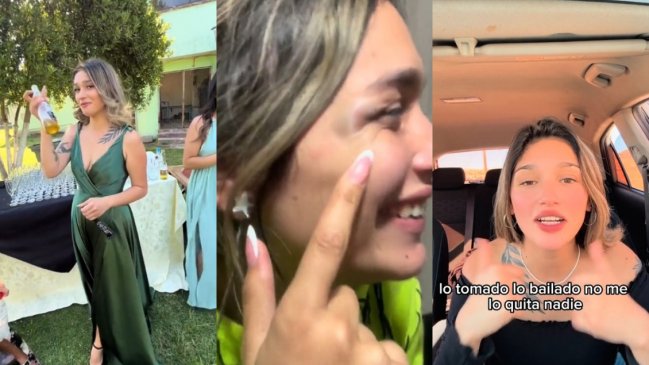 A través de TikTok, la invitada contó la historia tomándose con humor haber terminado con un ojo hinchado y en estado de ebriedad. "Peleé con el novio y la novia", dijo mientras otra persona decía "nos echaron de la boda".