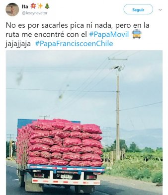 Ni el papa se salva: Los memes por la visita de Francisco Publicado: Martes, 16 de Enero de 2018 10 de 12 La visita del papa Francisco provocó que saliera todo el ingenio en redes sociales, donde los memes se rieron de casi todo. La visita del papa Francisco provocó que saliera todo el ingenio en redes sociales, donde los memes se rieron de casi todo.