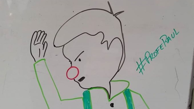 No se trata de cualquier ilustración: Opazo les dibuja memes en la pizarra, con temas que tienen que ver con cultura pop y educación. "Cuándo puedo dibujar y se me da el tiempo, los molesto así", cuenta Opazo a Cooperativa.