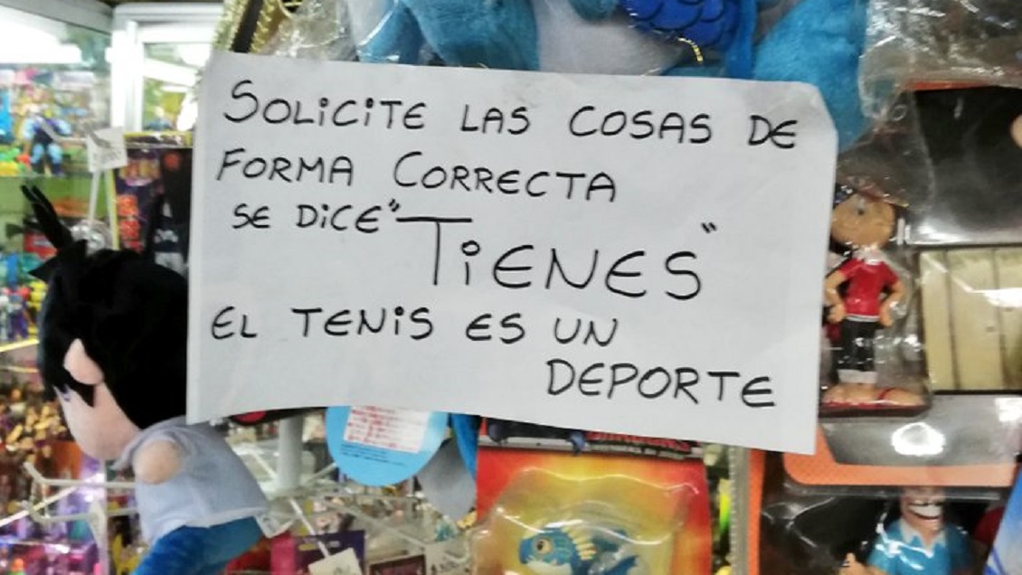 "Solicite las cosas de forma correcta. Se dice 'tienes'. El tenis es un deporte". Con ese mensaje el cartel de una tienda en el persa Biobío ya acumula más de 700 Me Gusta en redes sociales.