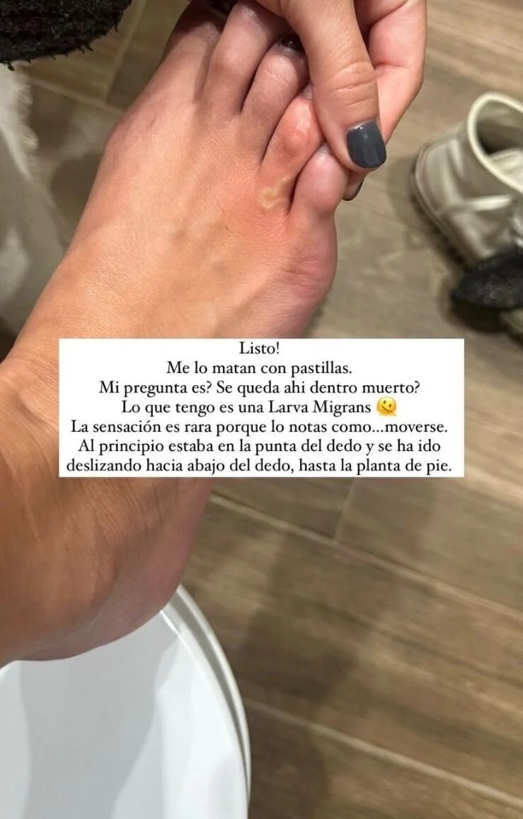 La influencer española Lucía Pombo reveló una extraña situación después de un viaje en Tanzania: pensó que tenía alergia o una picadura en el pie, pero descubrió que realmente tiene un pequeño gusano adentro.