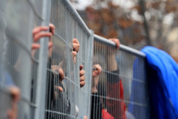 Al igual que los años anteriores, una larga fila de personas espera en el frontis del Teatro Caupolicán la venta de bodega de la tienda PC Factory donde se comercializarán unos 50 mil productos con hasta un 80 por ciento de descuento.