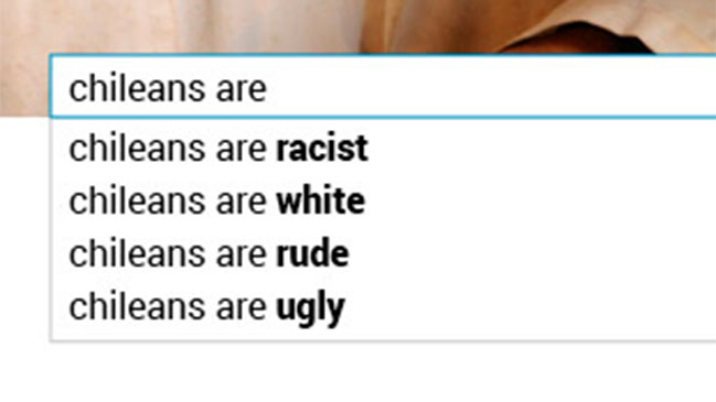 Los chilenos son racistas, blancos, groseros, feos. O al menos eso es lo que parecen pensar muchos, si se utiliza como indicador las búsquedas más populares de Google.
