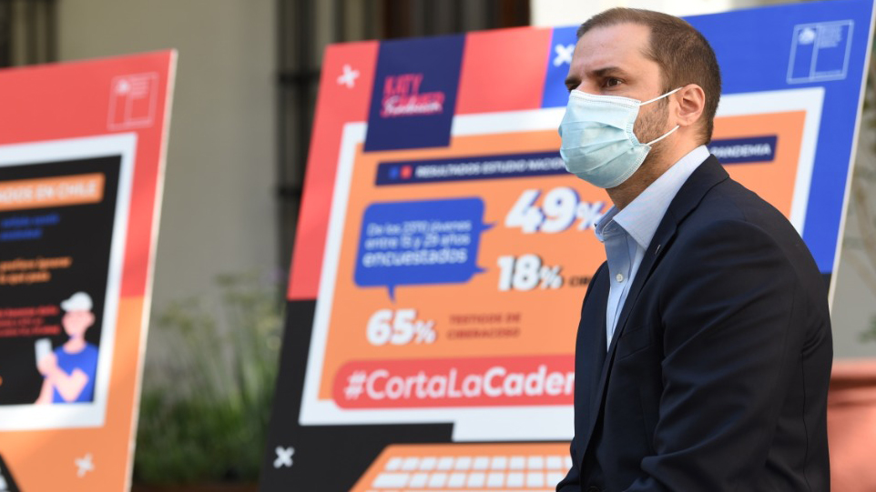 El ministro vocero de Gobierno, Jaime Bellolio, junto a la Fundación "Katy Summer", lanzaron esta mañana la campaña contra el Ciberacoso "Corta la Cadena" y presentaron los resultados del Estudio Nacional sobre Ciberacoso en Pandemia, elaborado en conjunto con la Universidad del Desarrollo.
