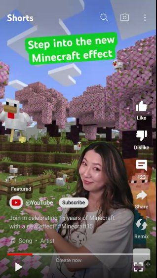 Para conmemorar que un 17 de mayo de 2009 se lanzó la primera versión de "Minecraft", histórica franquicia de videojuegos, YouTube y Mojang Studios lanzaron un nuevo efecto de los videos Shorts de la plataforma.