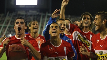 Tras la igualdad del marcador el juez añadió cuatro minutos de descuento y en un rápido contragolpe comandado por Marcelo Cañete la UC consiguió la victoria tras la gran definición de Francisco Pizarro ante la salida del portero Barovero y desató la alegría de los hinchas cruzados y del plantel quienes festejaron por primera vez una victoria en Argentina.
